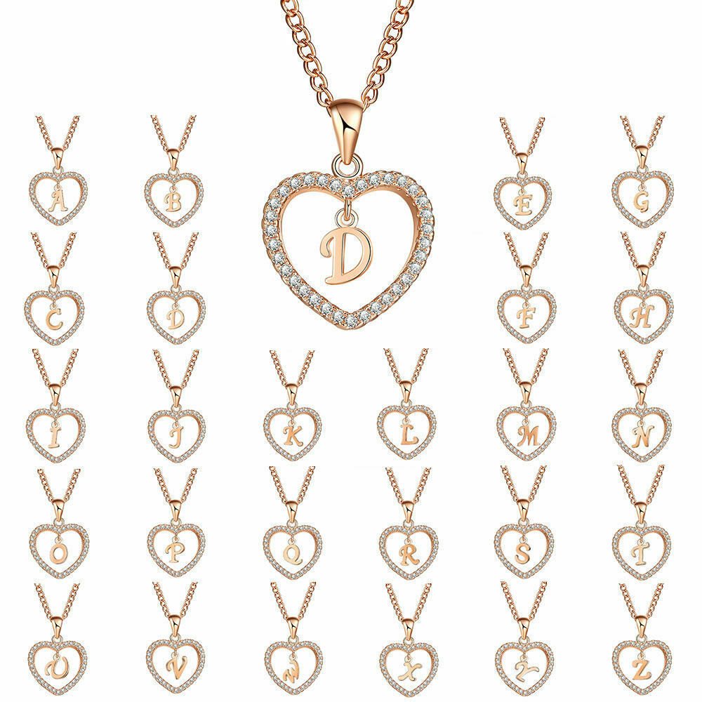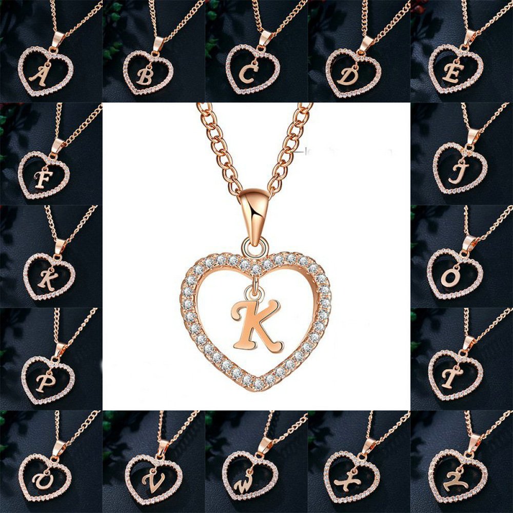 1 review for 26 Letters Heart-shaped Zircon Pendant Necklace Stainless Steel Gold Color Chains Jewelry Birthday Gift For Women
